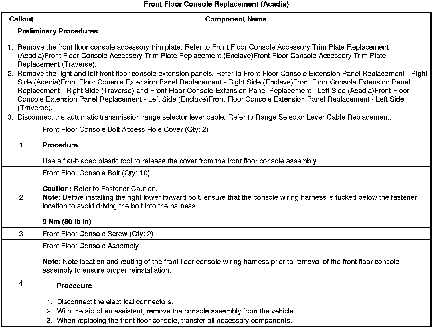 Front Floor Console Replacement (Acadia)