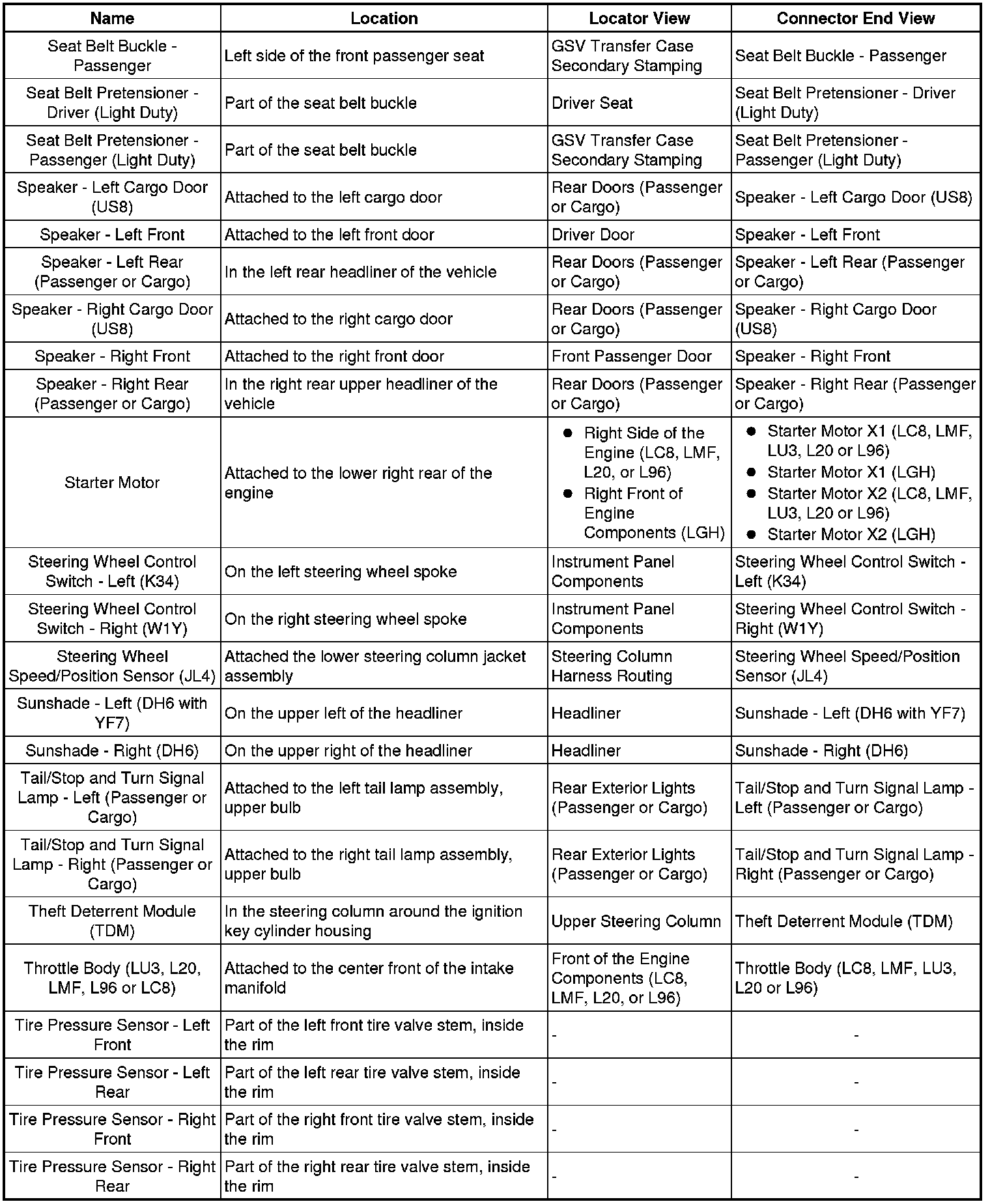 Master Electrical Component List
