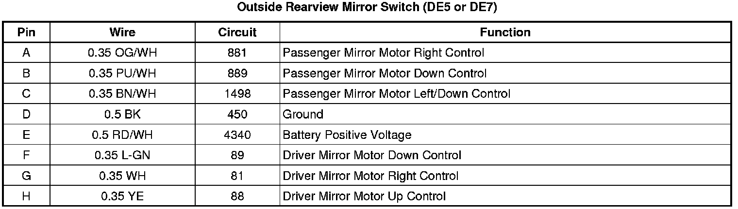Outside Rearview Mirror Switch (DE5 or DE7)