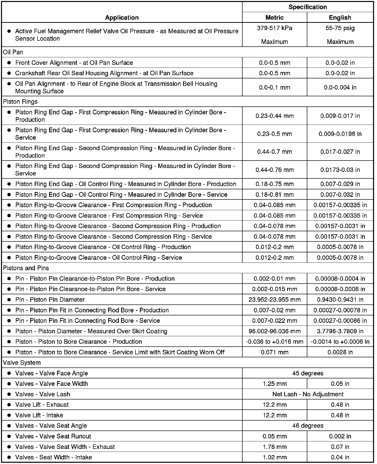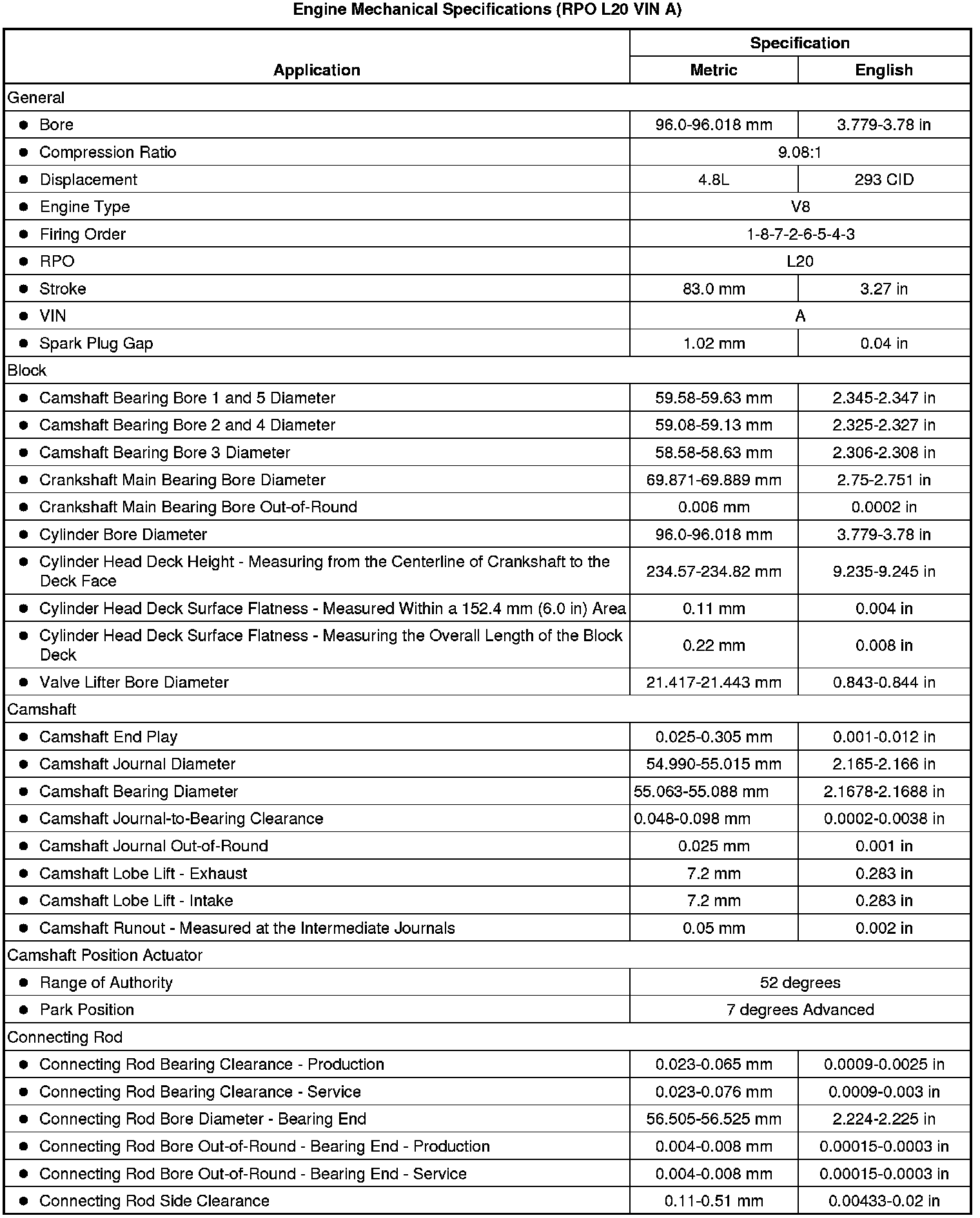 Engine Mechanical Specifications (RPO L20 VIN A)