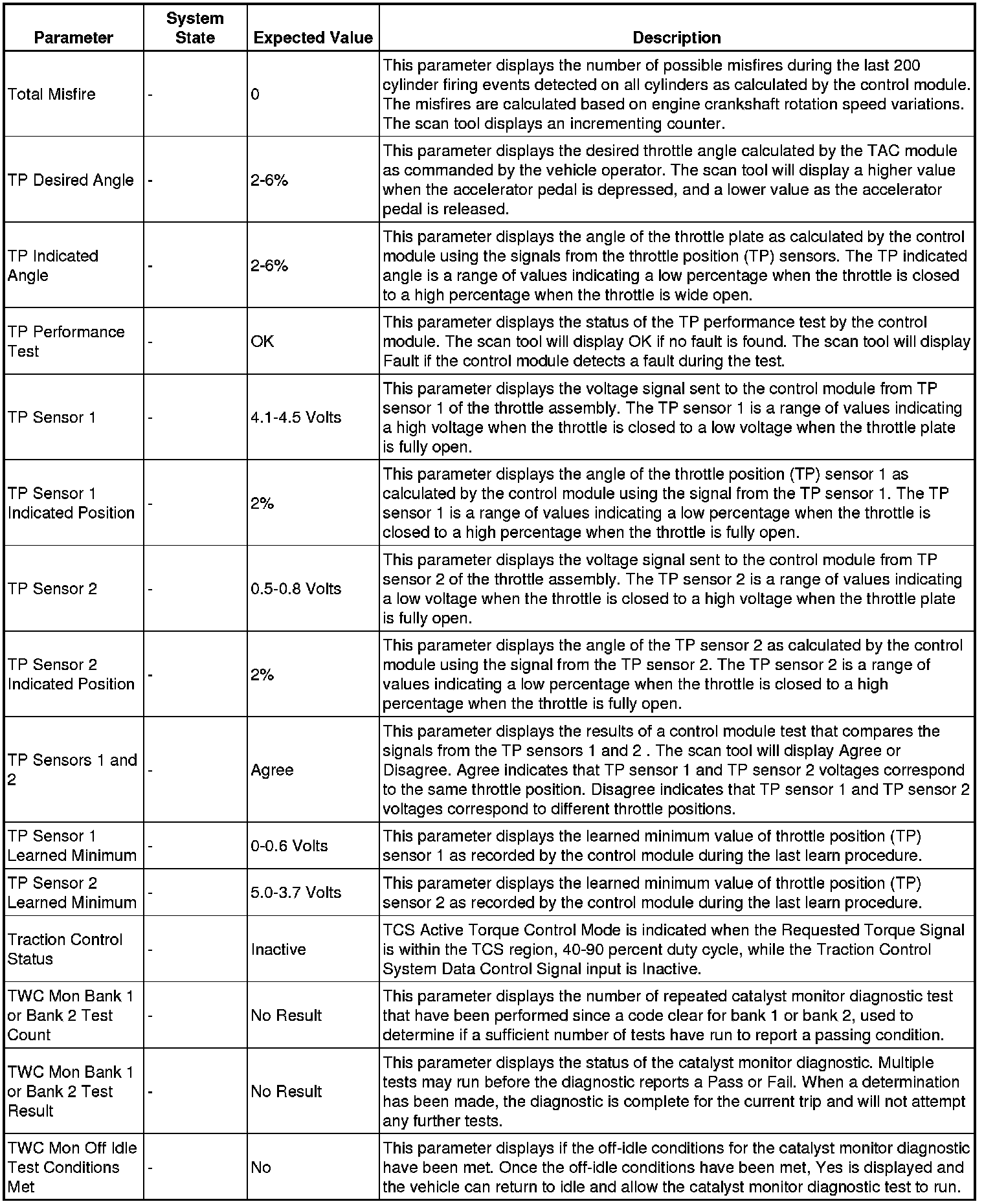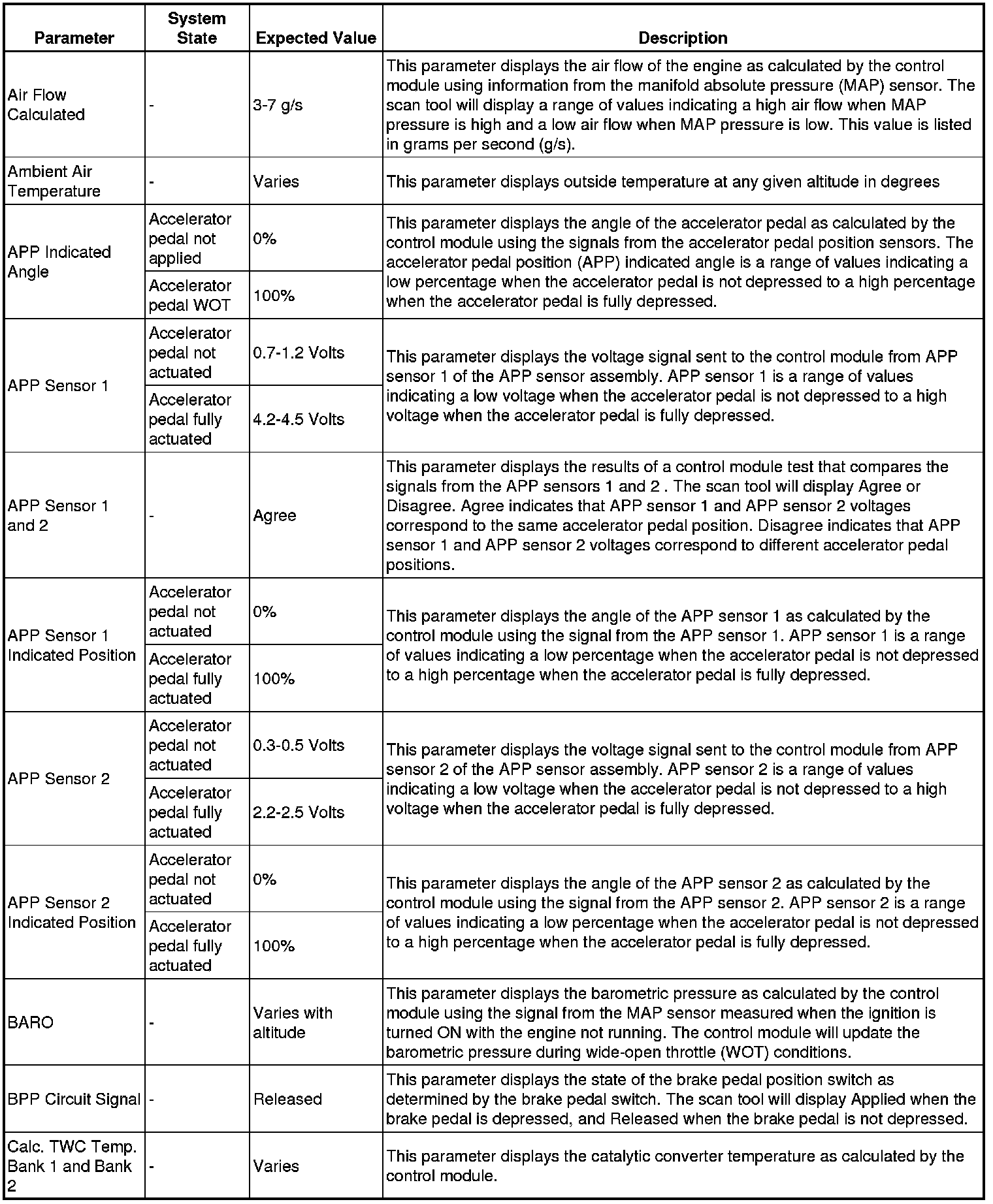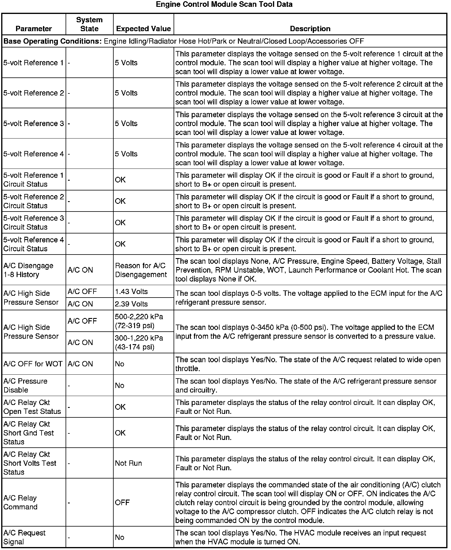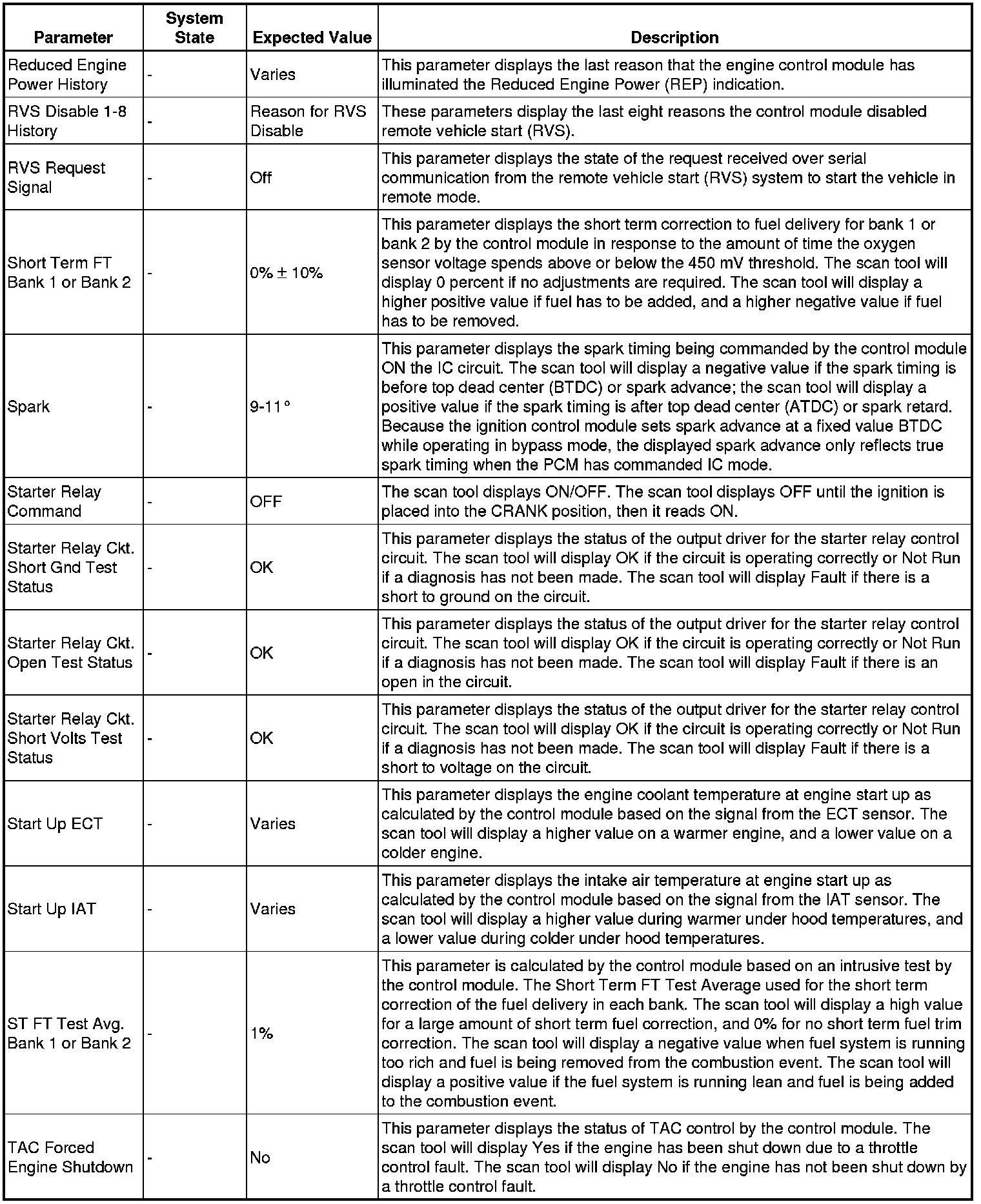 The Engine Control Module Scan Tool Data List contains all engine-related parameters that are available on the scan tool. The list is arranged in alphabetical order. A given parameter may appear in any one of the data lists, and in some cases may appear more than once, or in more than one data list in order to group certain related parameters together.