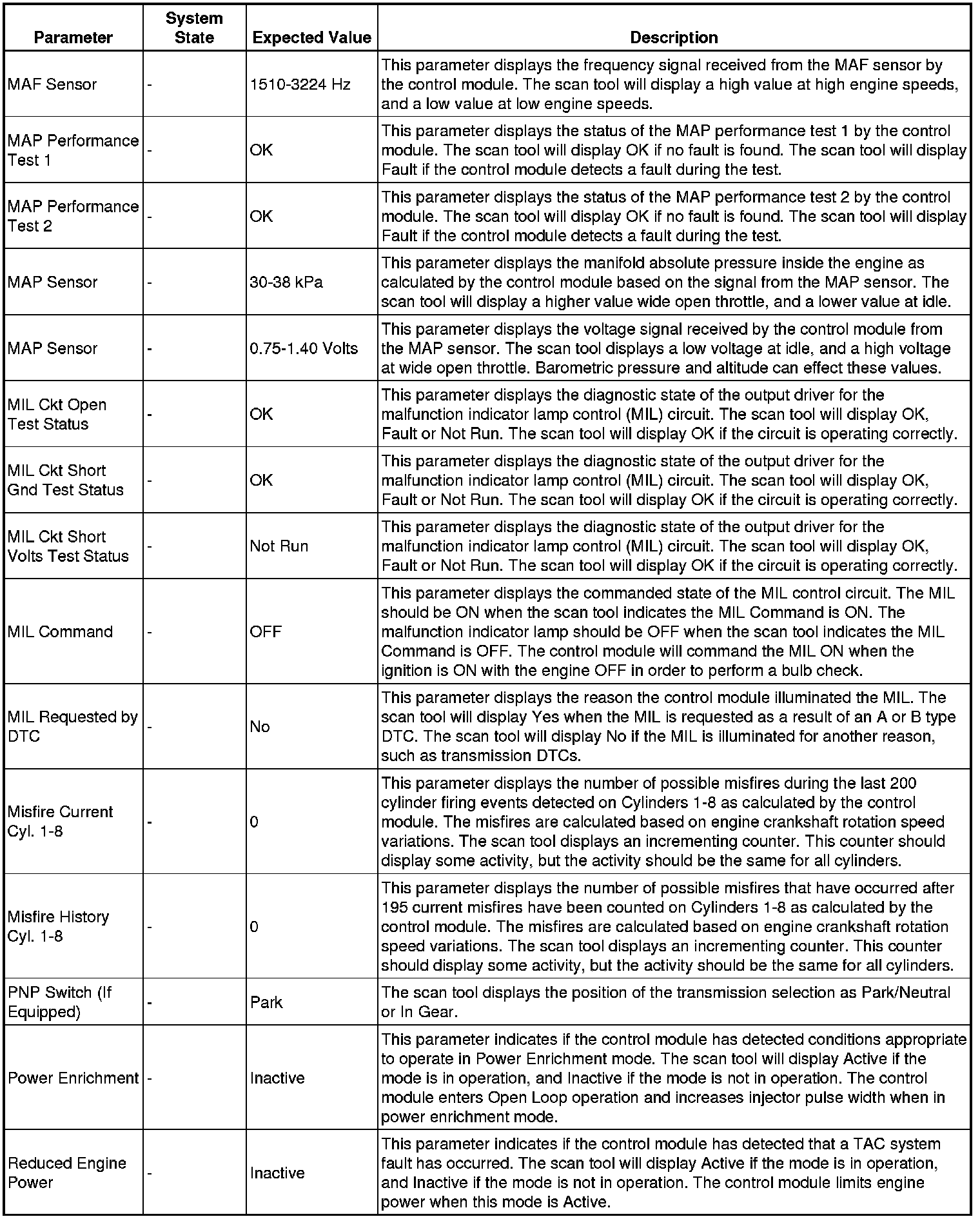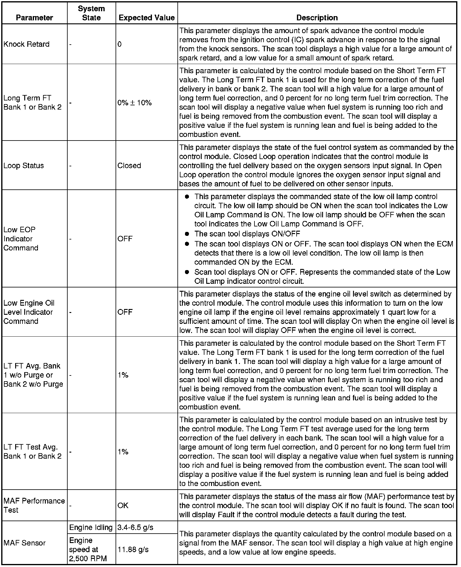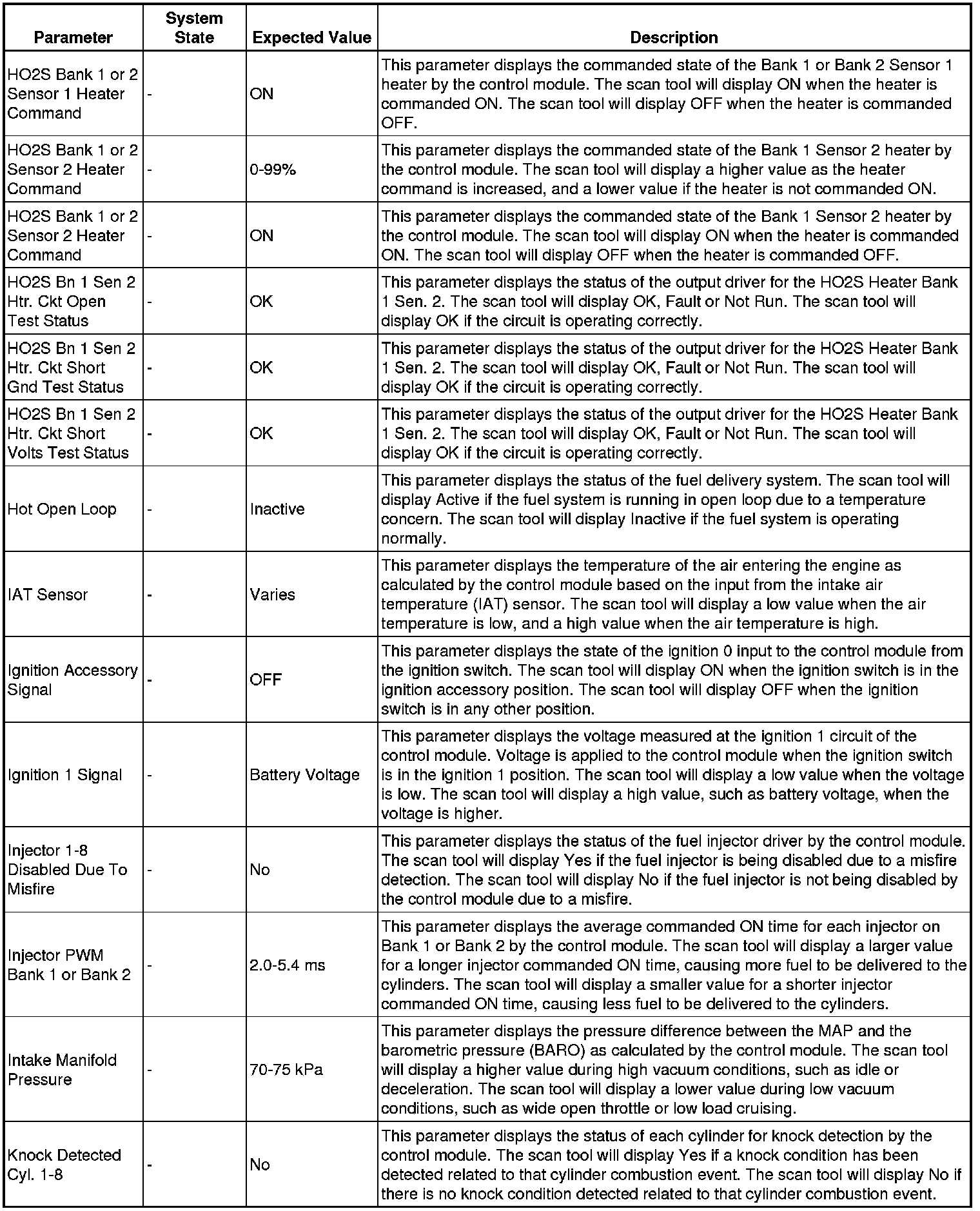 The scan tool values from a properly running engine may be used for comparison with the engine you are diagnosing. The engine scan tool data list represents values that would be seen on a normally running engine.