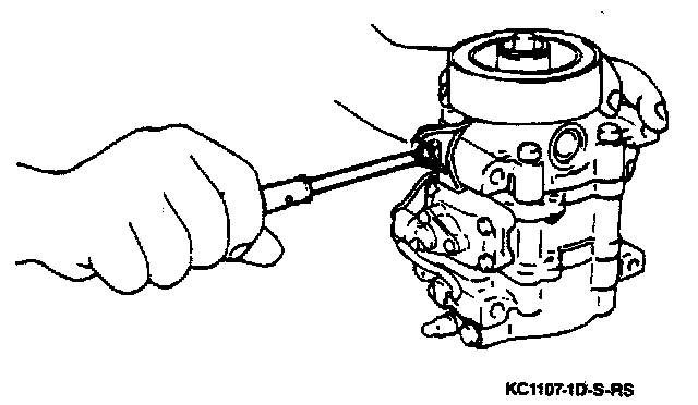 A. Adjust the clearance between the pressure plate and the rotor by putting shims on the compressor shaft. Standard Clearance: 0.5mm ± 0.15mm (0.020 in. ± 0.0059 in.) If the clearance is not within this tolerance, alter the number of shims to obtain standard clearance.