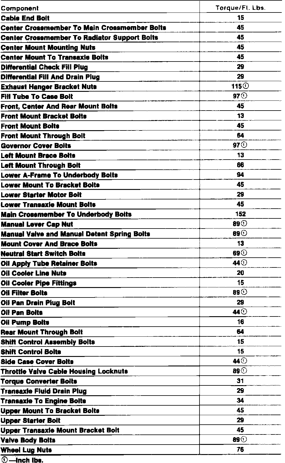 Torque Specifications