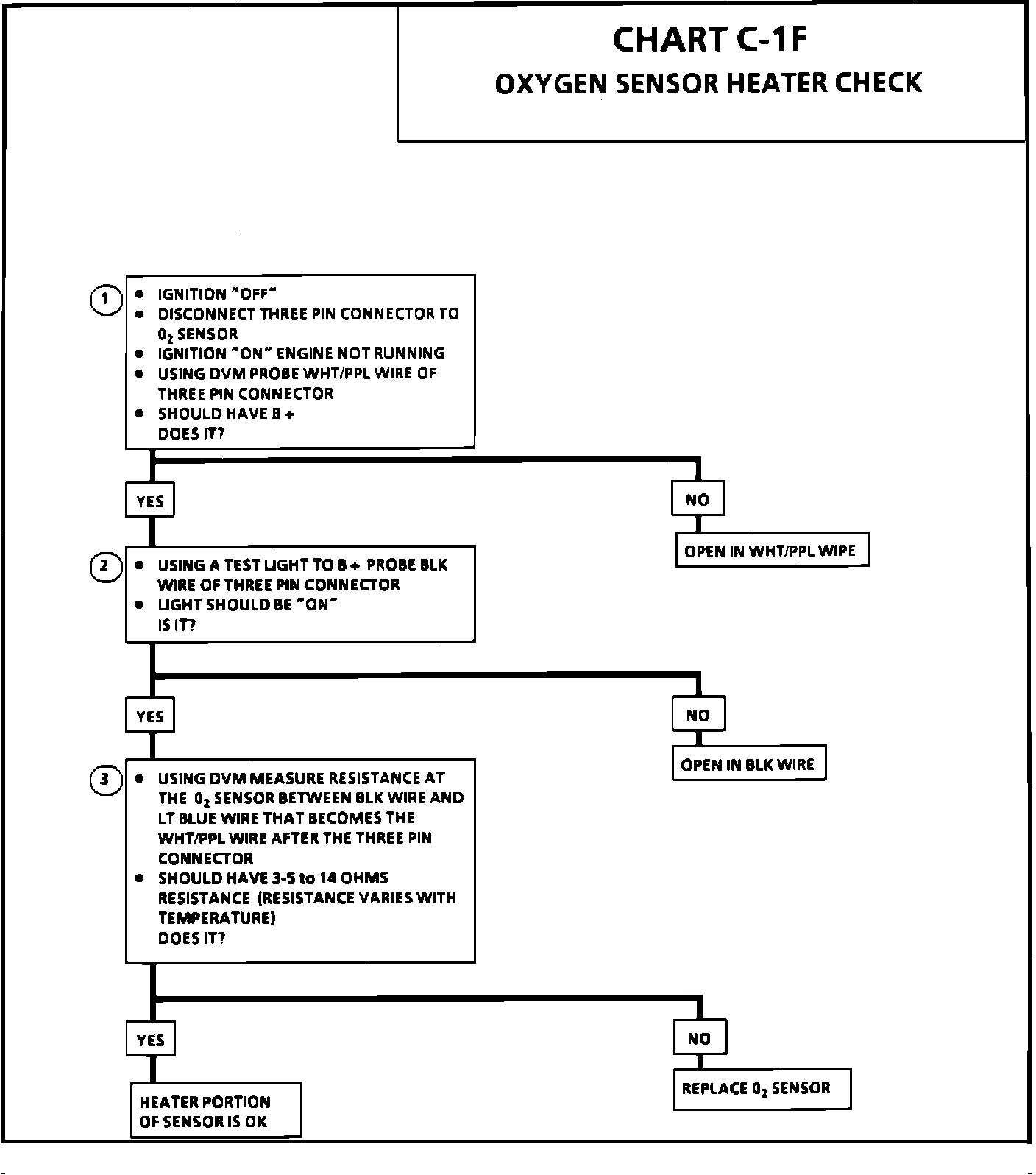 The following test procedures are for the heater part of the oxygen sensor. No malfunction codes will be logged if the heater fails to function properly.