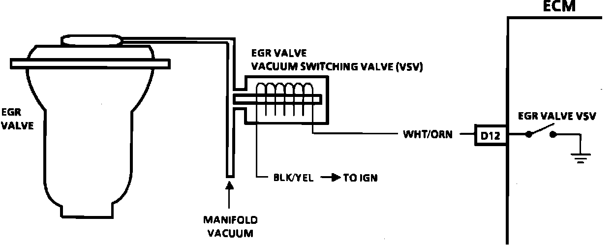 A properly operating EGR system will directly affect the air/fuel requirements of the engine. Since the exhaust gas introduced into the air/fuel mixture is an inert gas (contains very little or no oxygen), less fuel is required to maintain a correct air/fuel ratio. If the EGR system were to become inoperative, the inert exhaust gas would be replaced with air and the air/fuel mixture would be leaner. The ECM would compensate for the lean condition by adding fuel, resulting in higher block learn values. The engine control system operates within two block learn cells, a closed throttle cell and an open throttle cell. Since EGR is not sued at idle, the closed throttle cell would not be affected by EGR system operation. The open throttle cell is affected by EGR operation and when the EGR system is operating properly, the block learn values in both cells should be close to being the same. If the EGR system was inoperative, the block learn value in the open throttle cell would change (become higher to compensate for the resulting lean system, but the block learn value in the closed throttle cell would not change. This change or difference in block learn values is used to monitor EGR system performance.