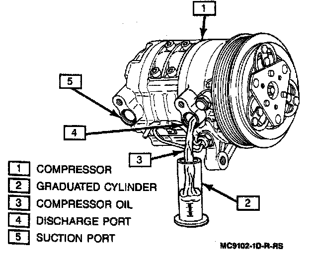 All new compressors are shipped with a charge of 200 ml (6.70 fl. oz.) of compressor oil. Therefore, it is necessary to drain off some oil to reach the correct oil level prior to installation on the vehicle.
