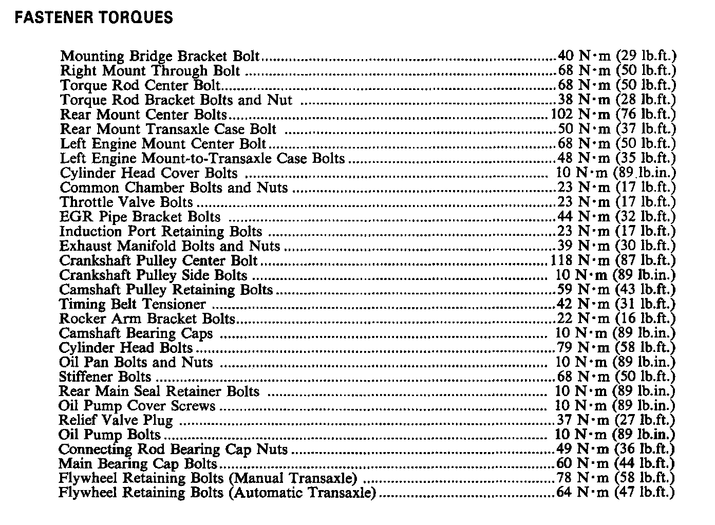 Torque Specifications: