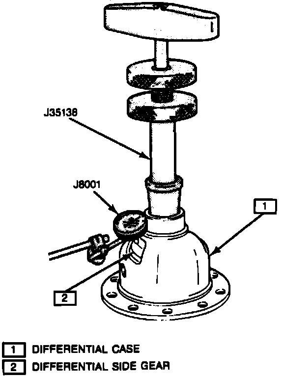 8. Install a .043 inch thrust washer and side thrust gear installation tool No. J35138, or equivalent onto differential side gear.