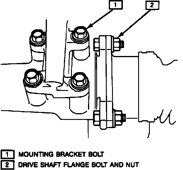 4. Remove four left mounting bracket bolts and three driveshaft flange bolts, Fig. 2.