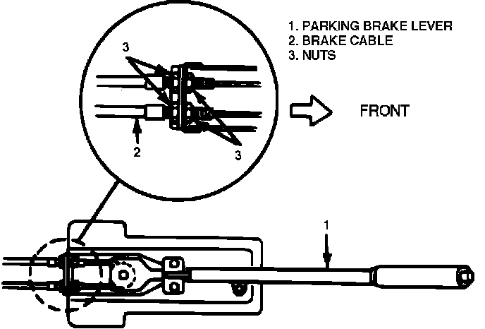 should be adjusted so lever comes up 4 to 9 notches with 44 to 55 lbs. of pull applied.