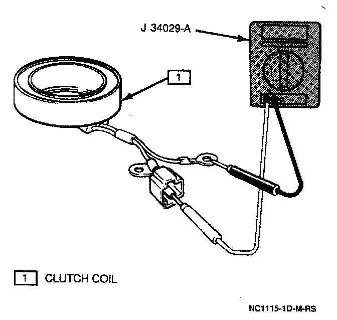 2. Clutch coil resistance using a J 34029-A. Replace clutch coil if resistance is not within specification.