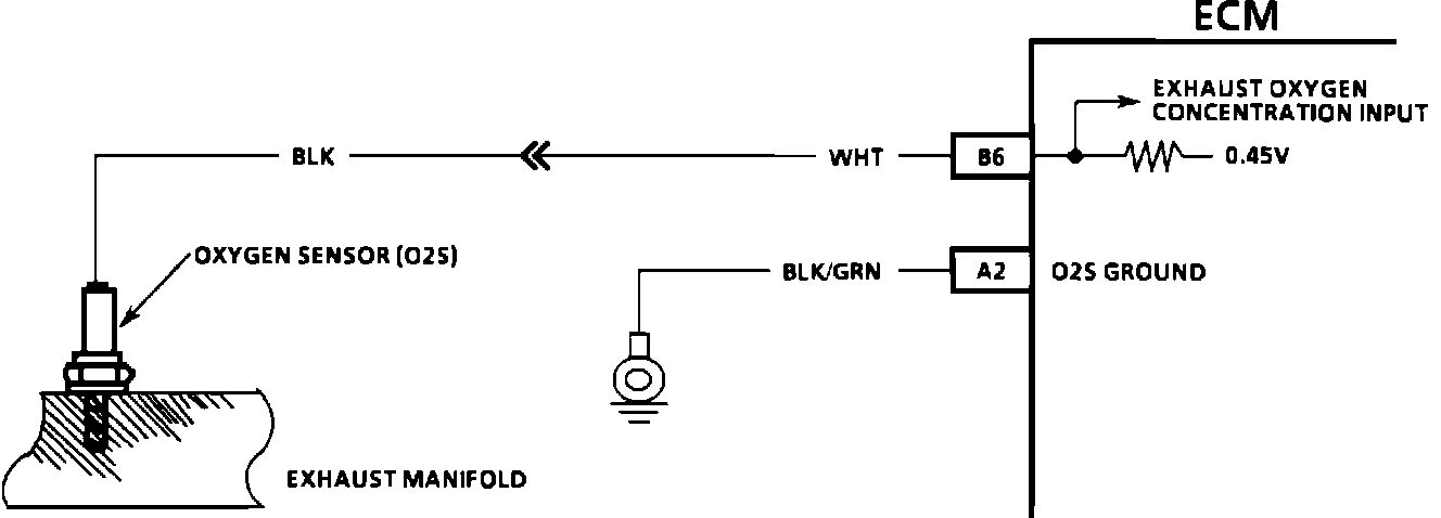 The oxygen sensor (02S), produces a voltage that varies between .1 volt and .9 volt under normal operating conditions. The ECM monitors this voltage and determines if the exhaust is lean or rich. If the voltage input at the ECM is about .1 volt, the exhaust is lean, and if the voltage input is about .9 volt, the exhaust is rich. If the (O2S) is below 360°C (600°F) it is like an open circuit and will not produce a voltage. This will cause "OPEN LOOP" operation.