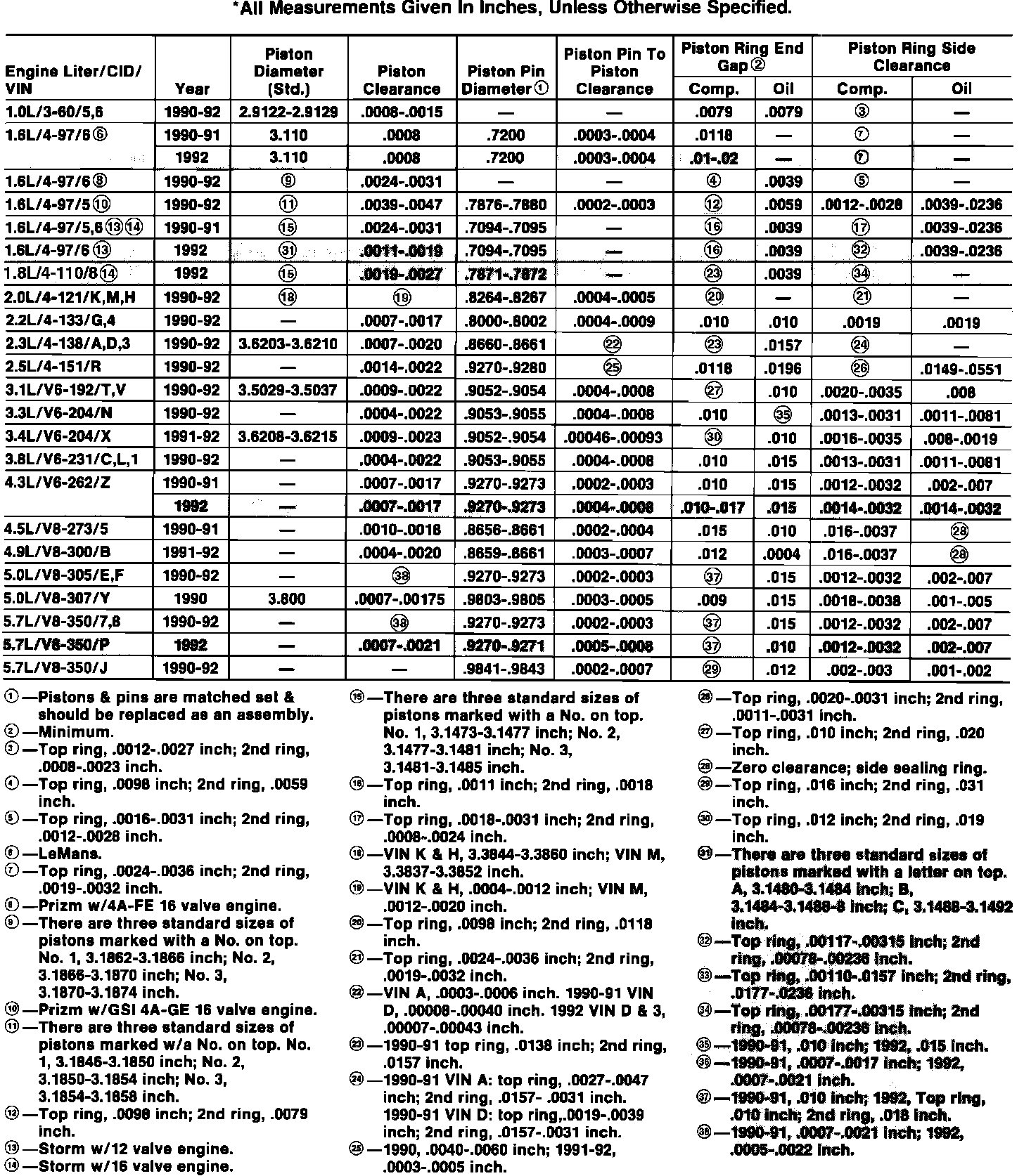 Pistons, Pins & Rings Specifications: