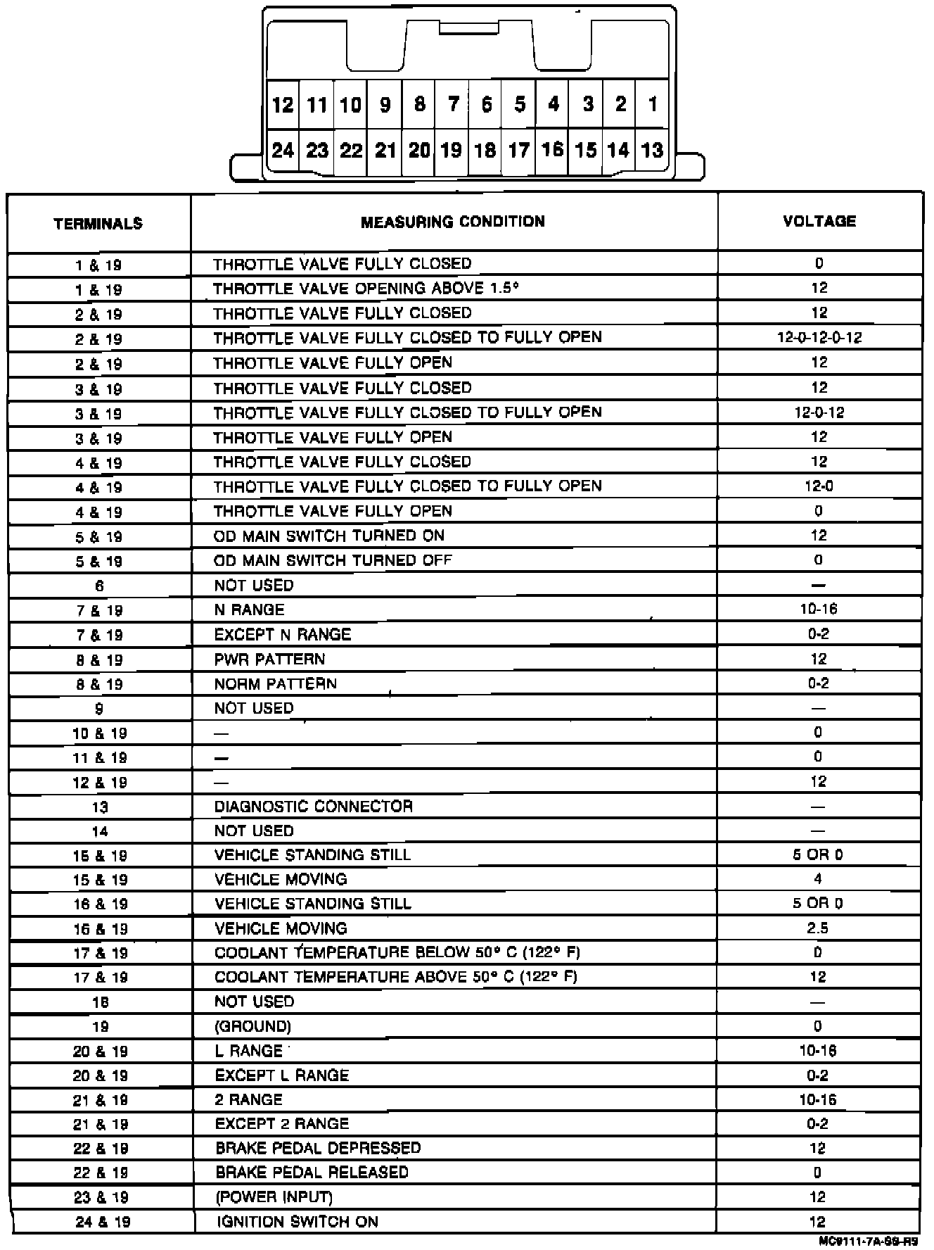 Voltage Readings - Automatic Transaxle Control Module Connector Cavities: