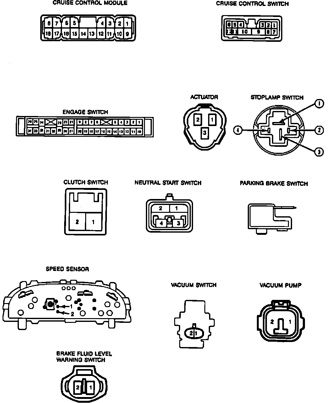 Fig. 15 Cruise Control System Connector Terminal Identification: