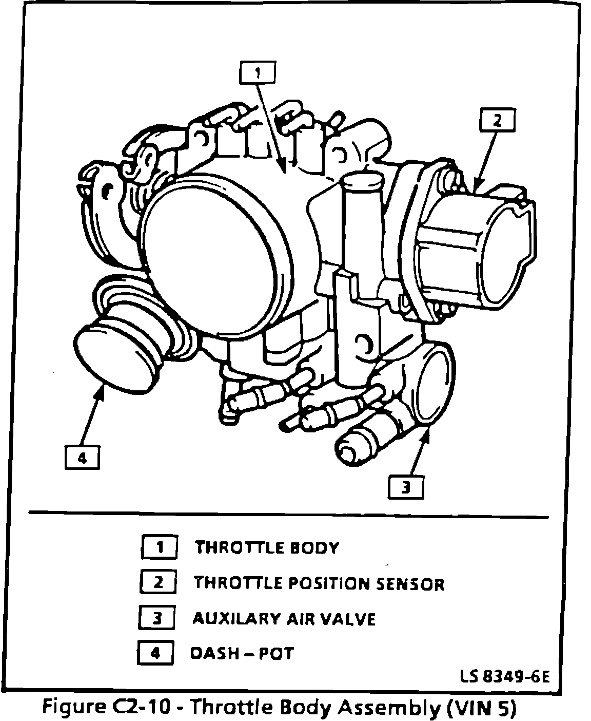 On 1991 model year vehicles built between VIN MZ053796 and MZ086198, the Valve, Throttle Body Auxiliary Air P/N 94845502, should also be replaced in addition to the ECM. The auxiliary air valve is part of the fuel injection throttle body assembly and is shown on the illustration as item # 3.