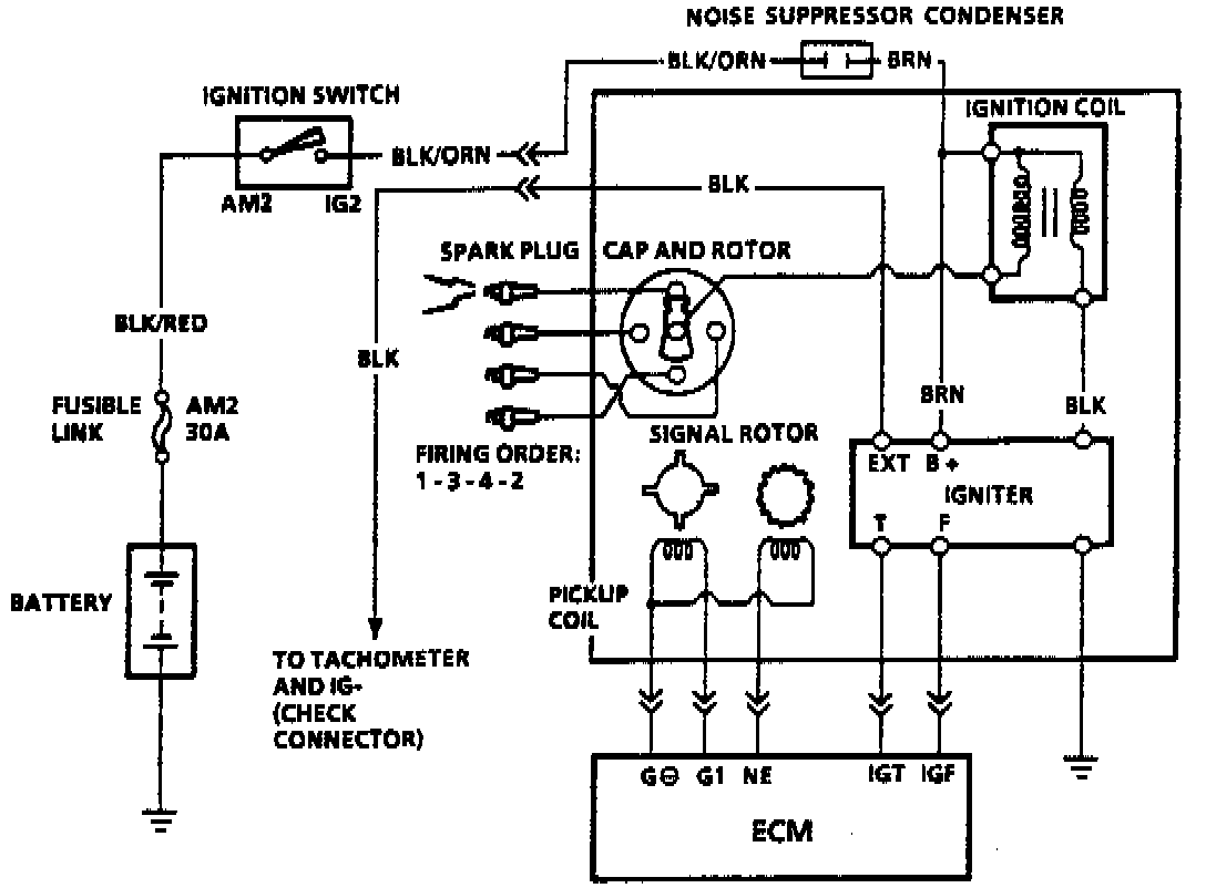 The igniter is essentially an electronic relay. It receives a "trigger" from the ECM and responds by turning a higher amperage current to the ignition coil on and off. Each time a spark is produced an ignition confirmation (IGF) signal is sent to the ECM.