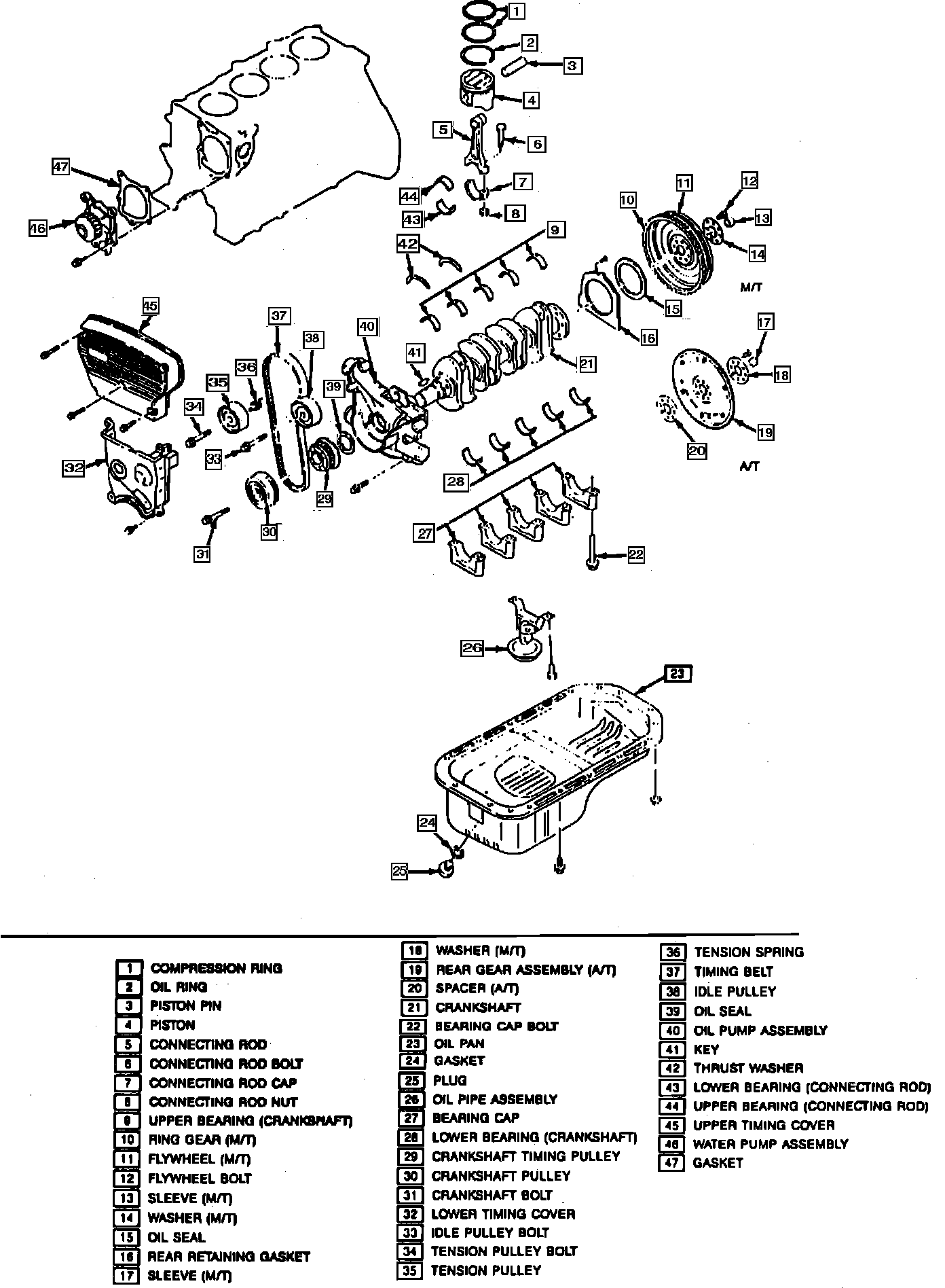 Fig. 7 DOHC Cylinder Block Components: