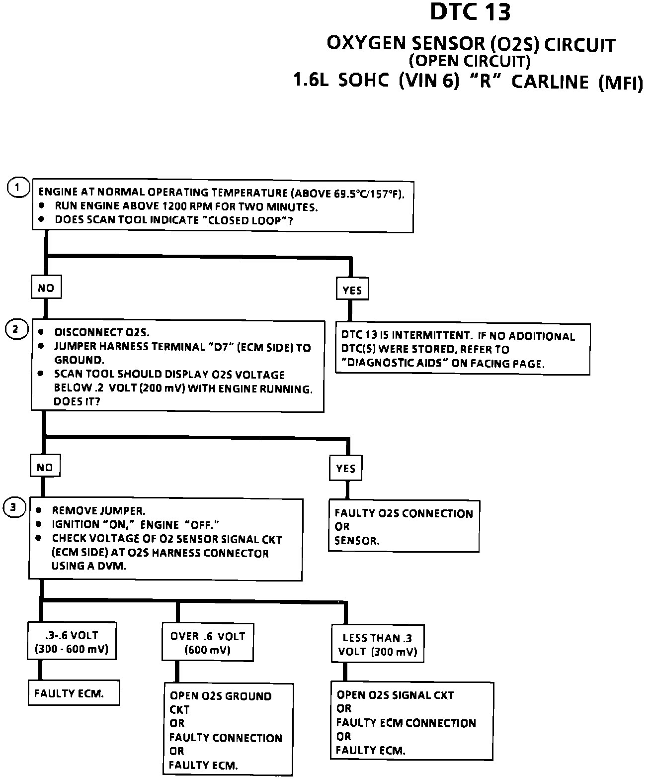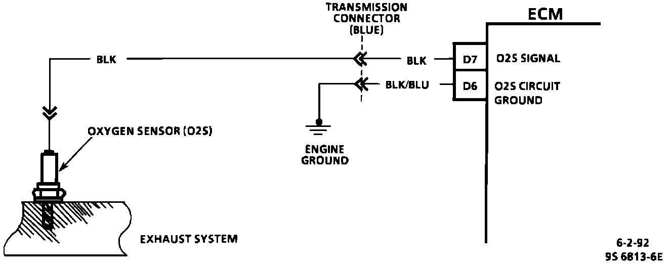 The oxygen sensor (02S), produces a voltage that varies between .1 volt and .9 volt under normal operating conditions. The ECM monitors this voltage and determines if the exhaust is lean or rich. If the voltage input at the ECM is about .1 volt, the exhaust is lean, and if the voltage input is about .9 volt, the exhaust is rich. If the (O2S) is below 360°C (600°F) it is like an open circuit and will not produce a voltage. This will cause "OPEN LOOP" operation.