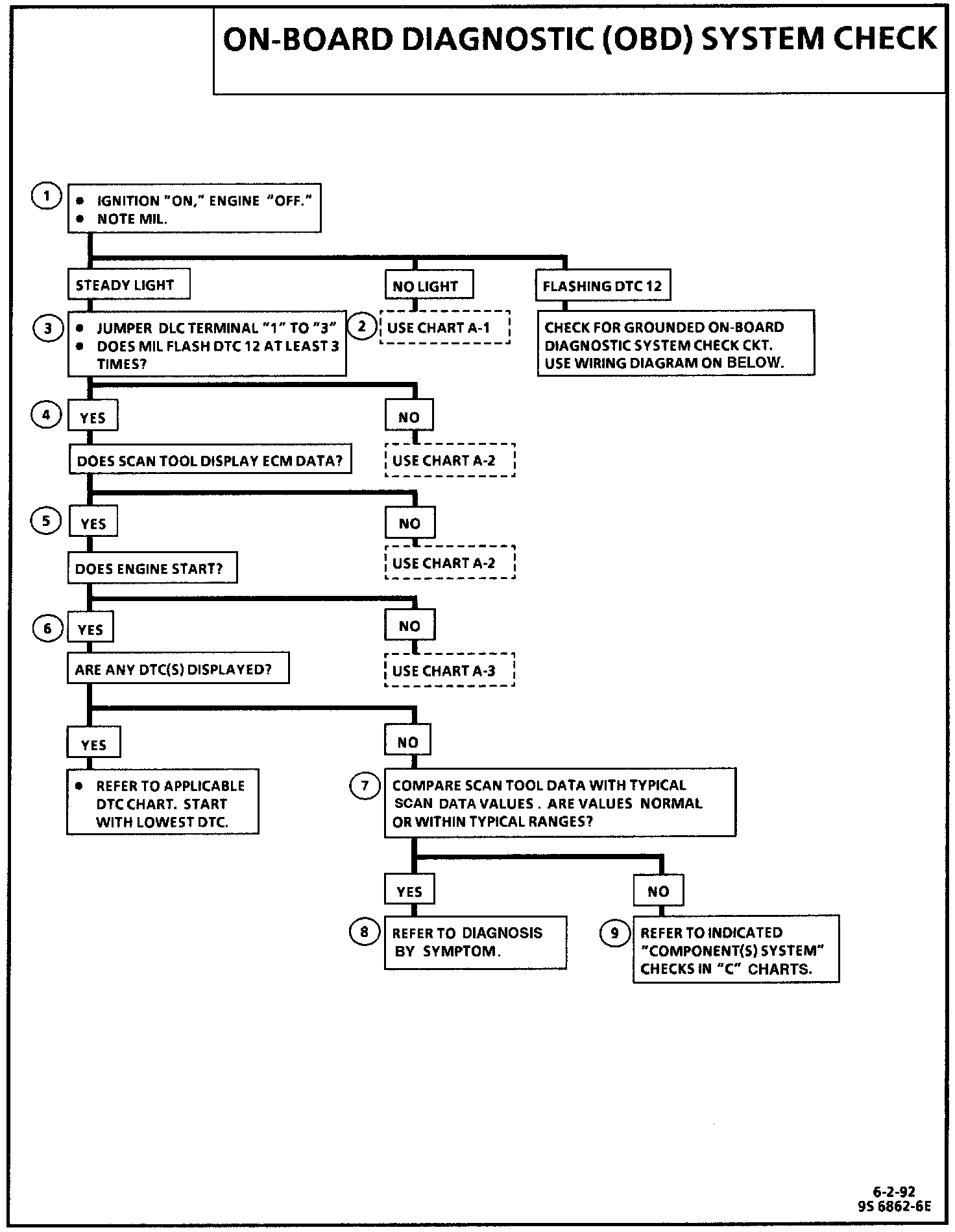 The On Board Diagnostic (OBD) system check is an organized approach to identifying a problem created by a malfunction in the engine control system. It must be the starting point for any driveability complaint diagnosis, because it directs the service technician to the next logical step in diagnosing the complaint. Understanding the chart and using it correctly will reduce diagnostic time and prevent the unnecessary replacement of good parts.
