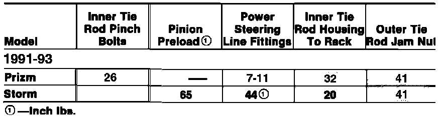 Tightening Specifications: