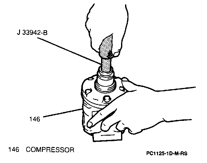 NOTICE: Do not use a press, hammer or other similar tools to press the J 33942-B or shaft seal into place. Damage to the compressor or compressor shaft seal may occur.