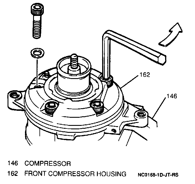 6. Five Allen-head bolts and washers securing front compressor housing.