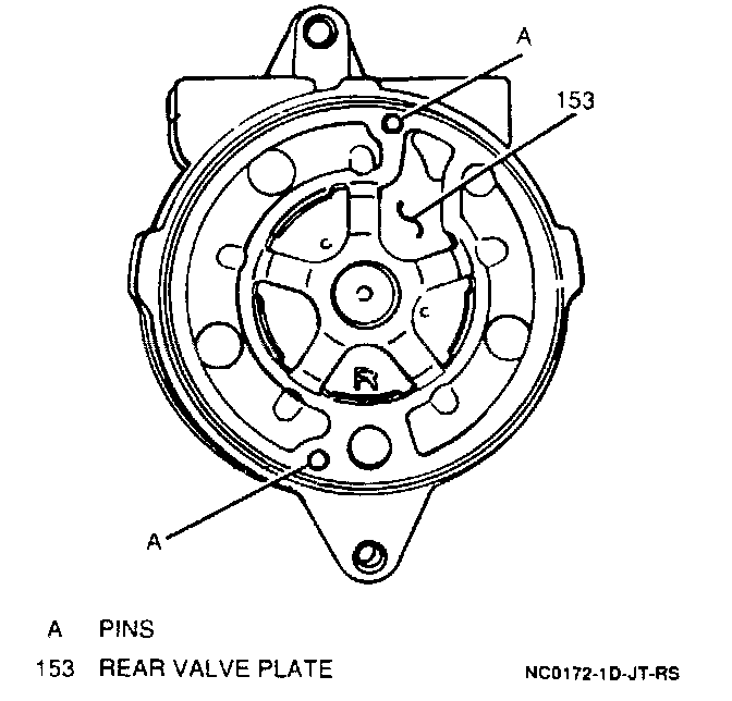 13. Two pins from rear of compressor and valve plate.