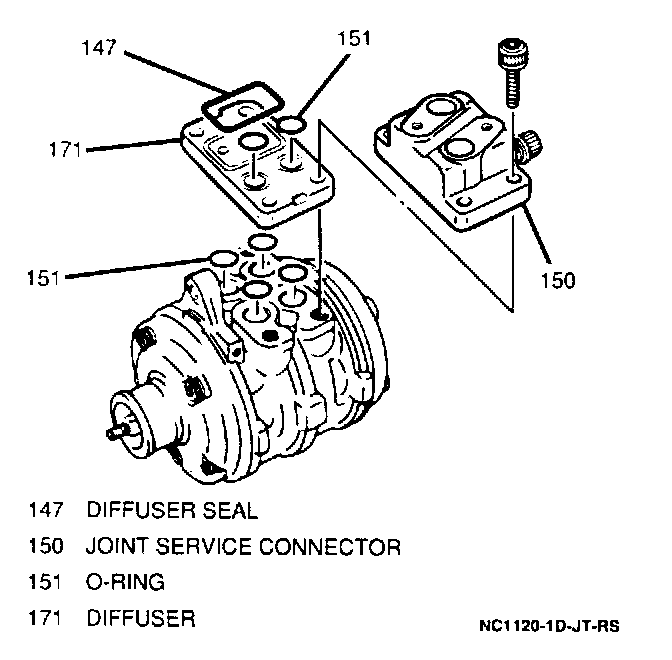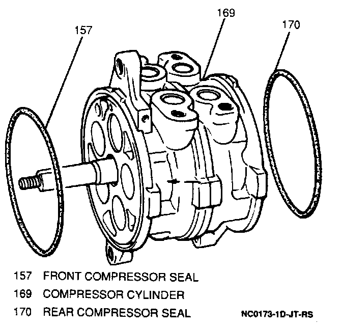 1. New compressor seal to rear of compressor. Lubricate seal with PAG compressor oil.