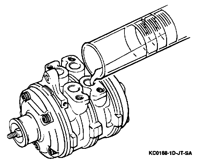 ^ If a new compressor is being installed, it is shipped from the factory with 100 ml (3.4 fl.oz.) of PAG compressor oil in it. Drain 40 ml (1.4 fl.oz.) of oil from the new compressor before installation, as that much oil remains in other components within the vehicle's refrigeration system.