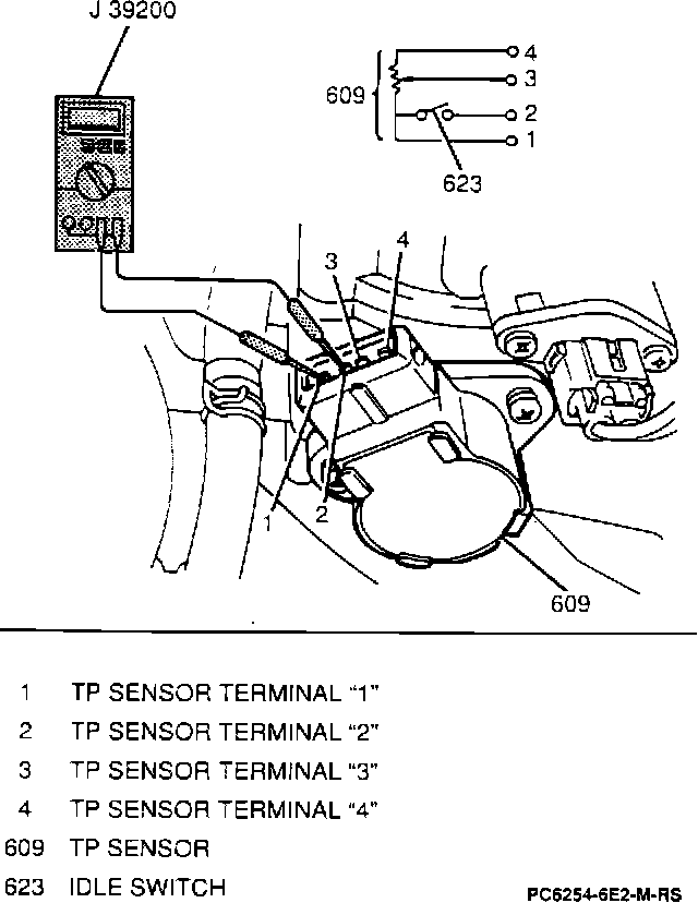 ^ Connect an ohmmeter from terminal "1" to terminal "2" of TPS.