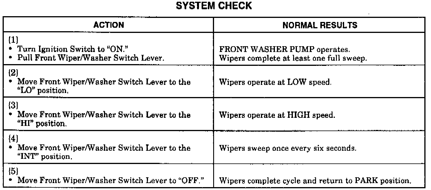 System Check For Pulse Wipers: