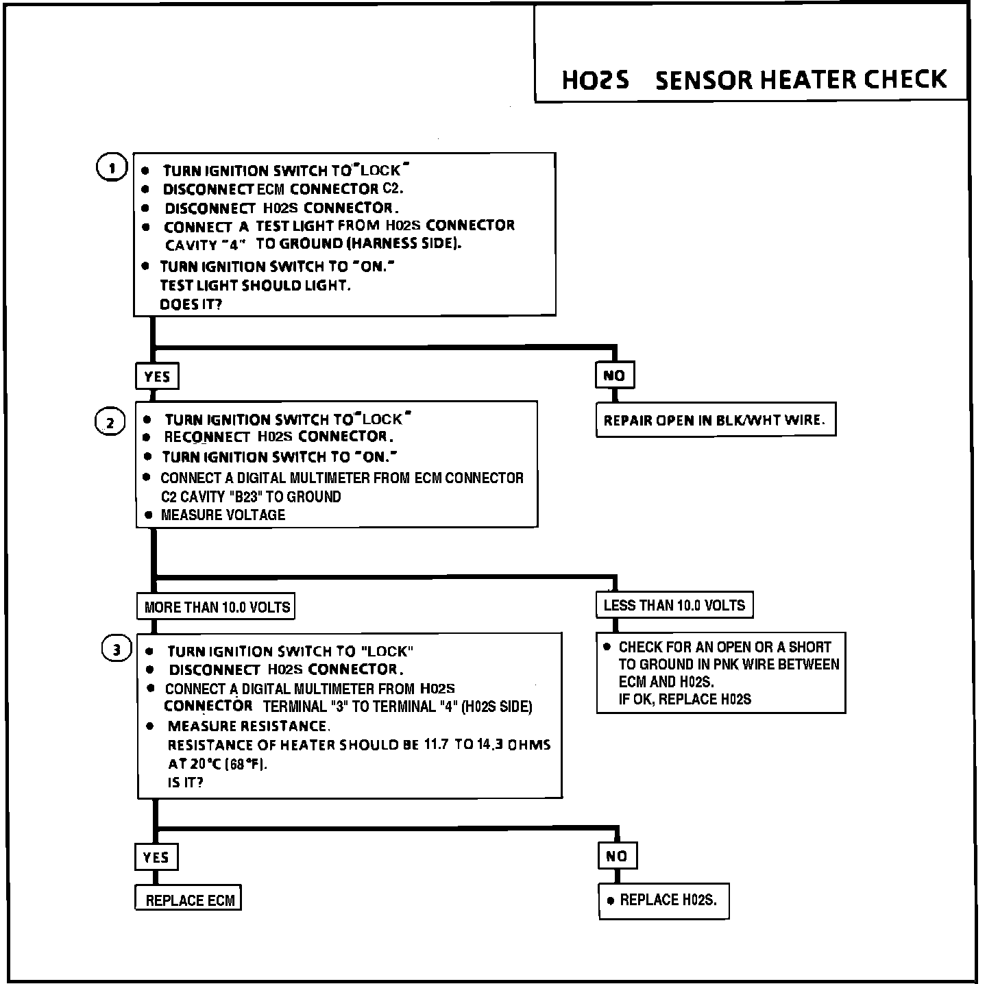 2. This checks for an open or short to ground in the PNK wire between the ECM and H02S, or for a faulty H02S.