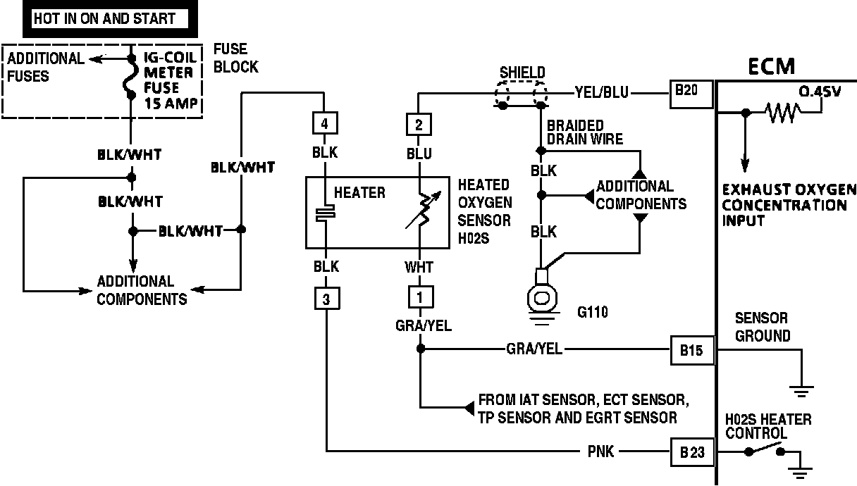 2. This checks for an open in GRA/YEL wire between ECM and H02S or for a faulty ECM.