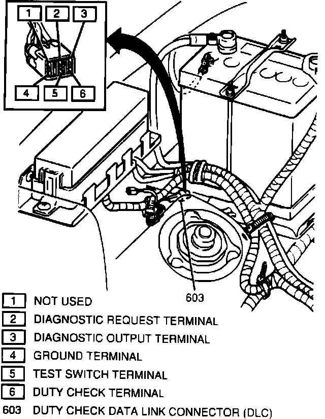 7. Remove the cap from the diagnostic connector. Connect a jumper wire between terminals 4 and 5.