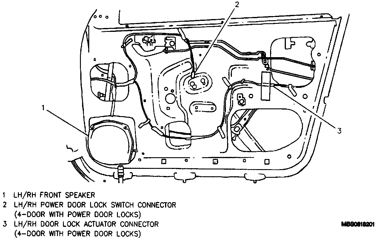 LH/RH Front Door Wiring (Four-Door Shown Two-Door Similar):