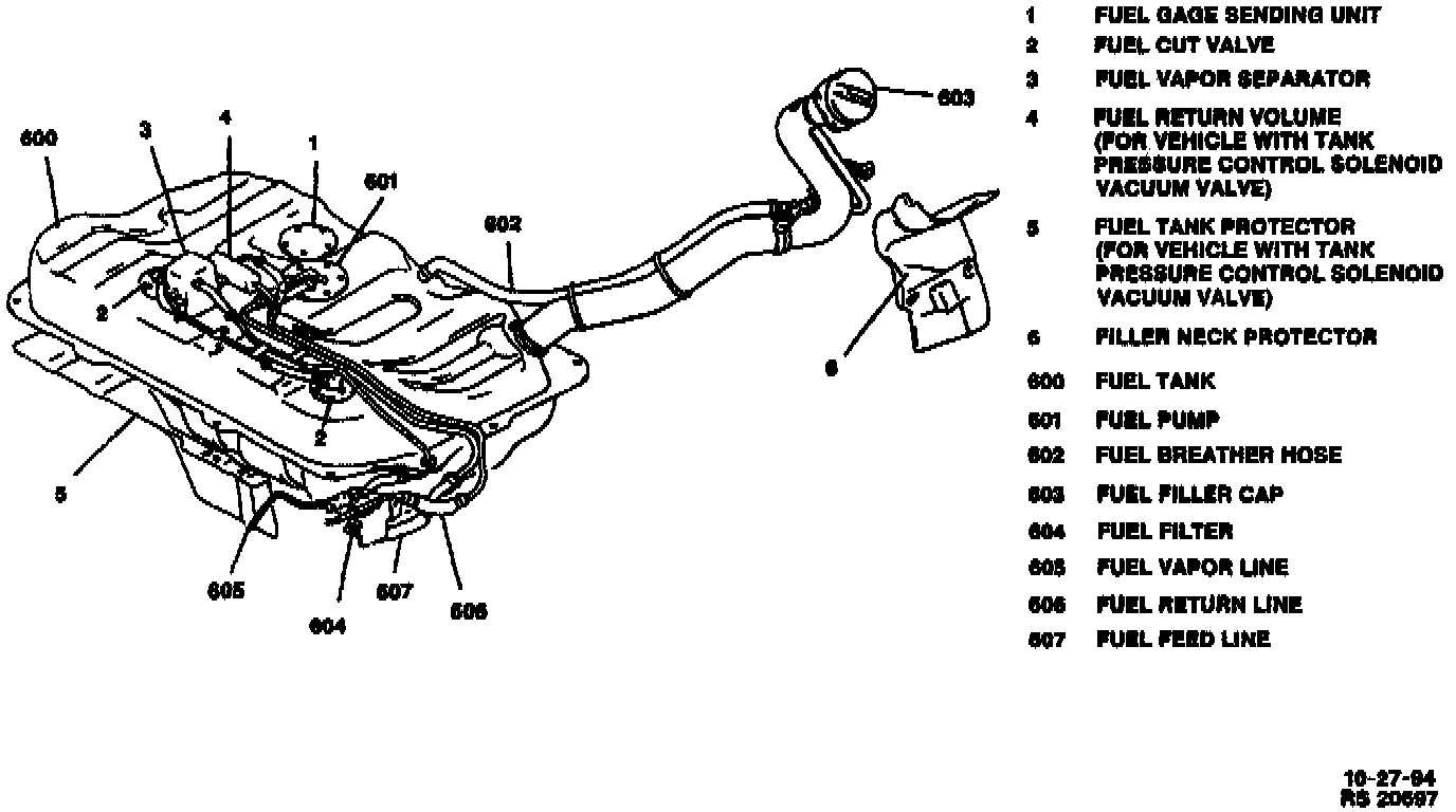 The fuel filter is located at the left front side of the fuel tank.