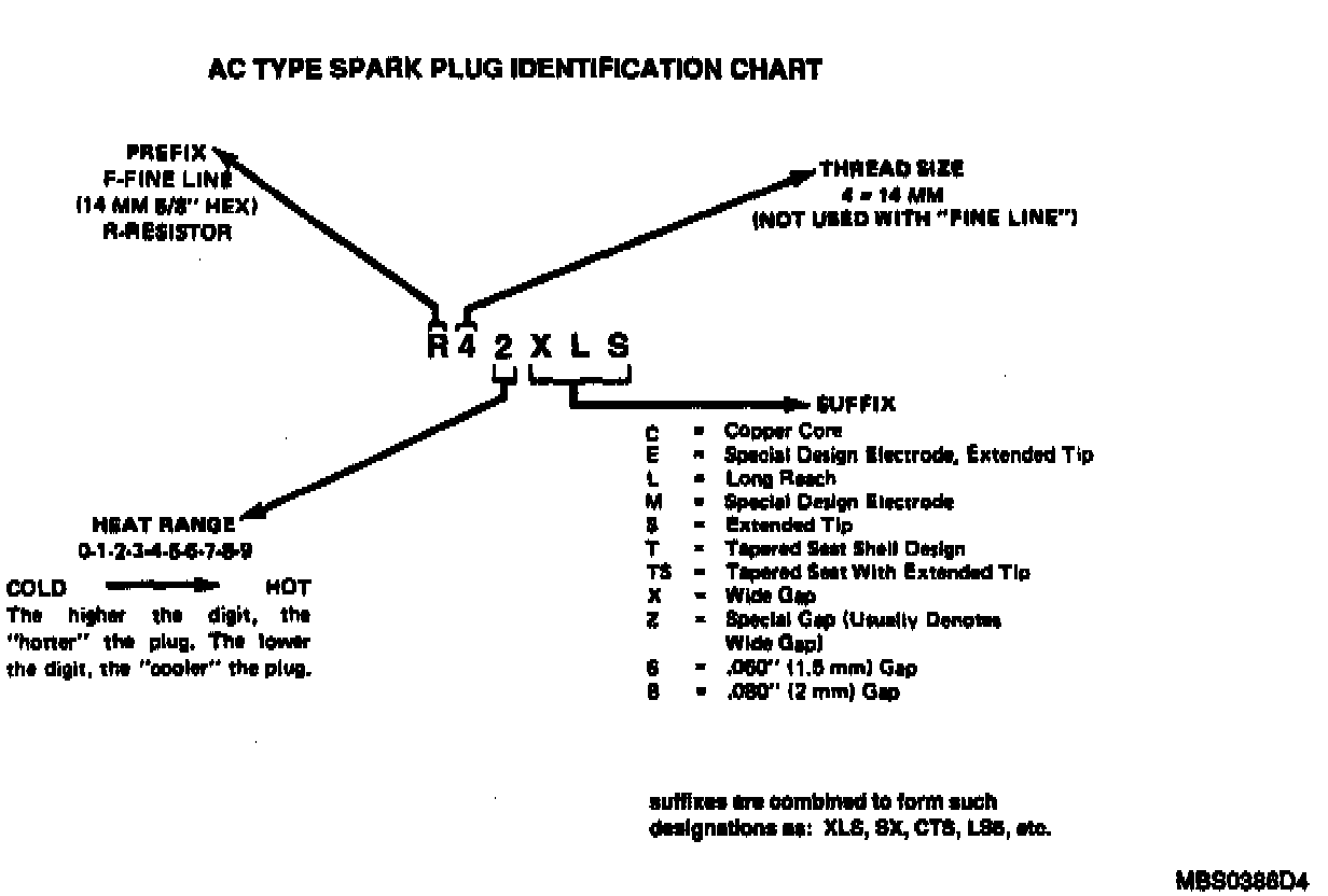 AC Type Spark Plug Identification Chart:
