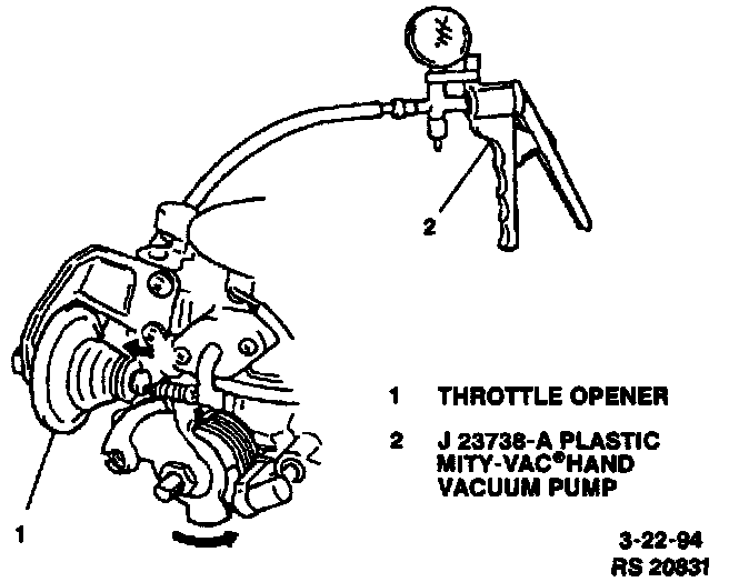 ^ Remove throttle opener vacuum hose at Throttle Opener Solenoid Vacuum (TO SV) valve. Apply 16-20 inch Hg to the throttle opener.