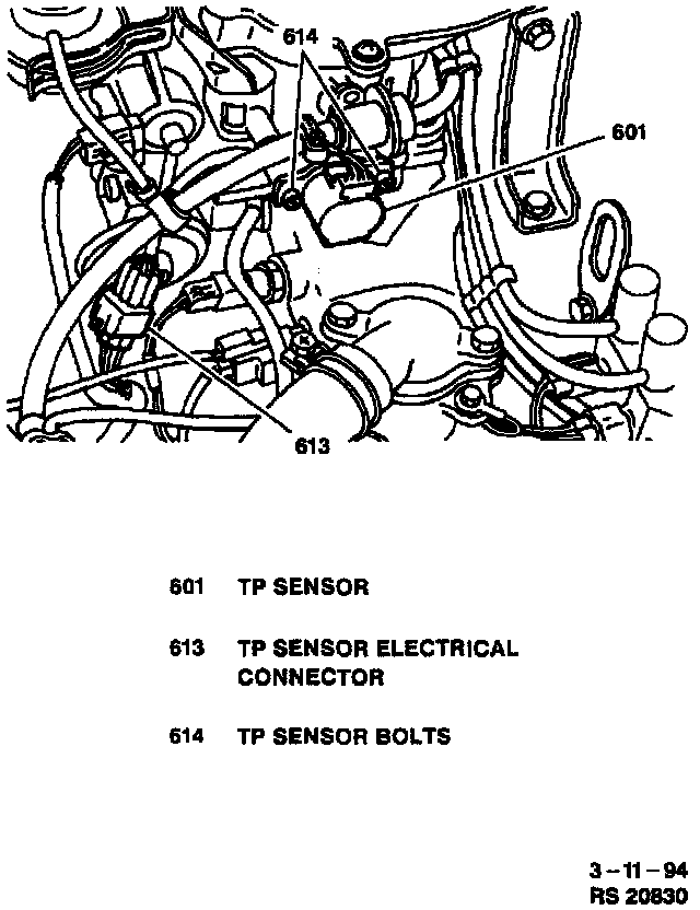 1. TP sensor to TBI unit; secure with two bolts. Do not tighten fully.