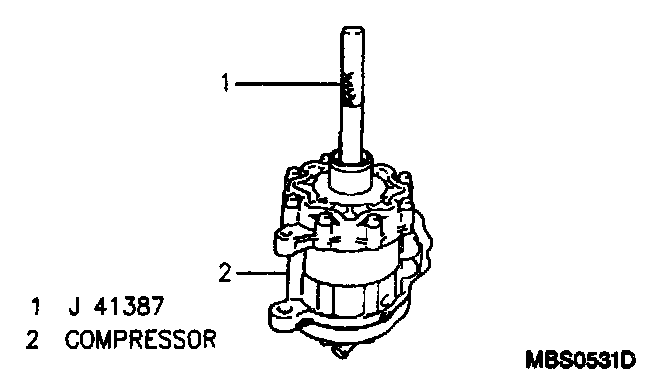 5. Compressor shaft seal using tool J 41387. Insert tool, turn until making contact with shaft seal notches and pull shaft seal out.