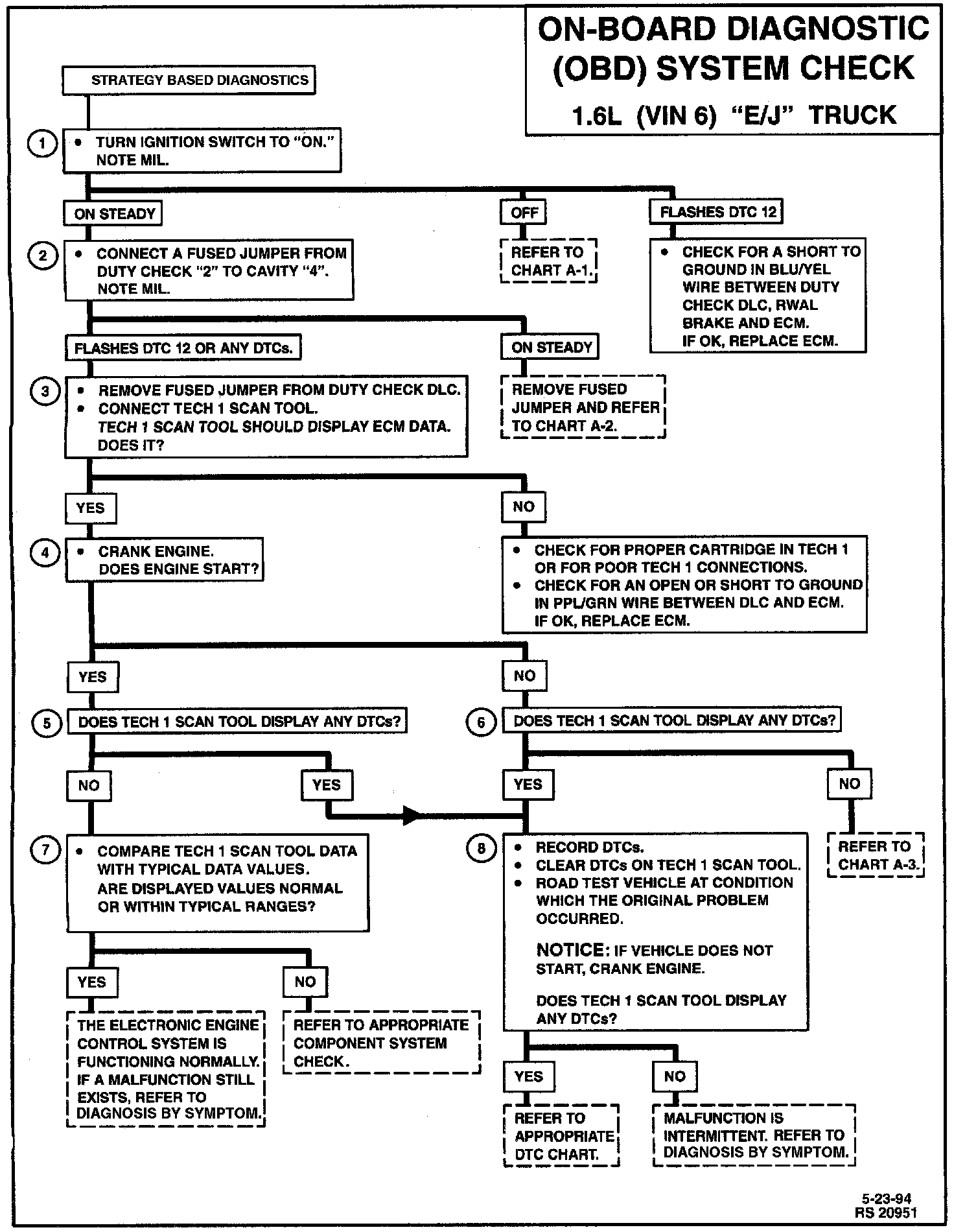The On-Board Diagnostic (OBD) System Check is an organized approach to identifying a problem created by an electronic engine control system malfunction. It must be the starting point for any driveability complaint diagnosis, because it directs the service technician to the next logical step in diagnosing the complaint. Understanding the chart and using it correctly will reduce diagnostic time and prevent the unnecessary replacement of good parts.