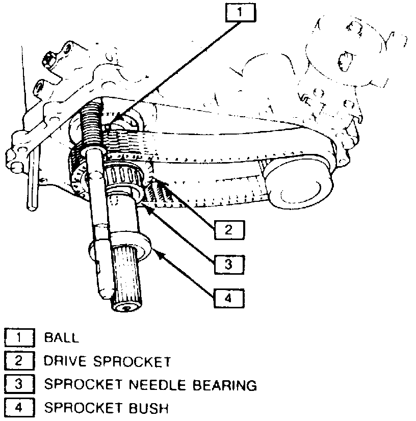 15. Install needle bearing and bushing on sprocket, then the steel ball, Fig. 16.