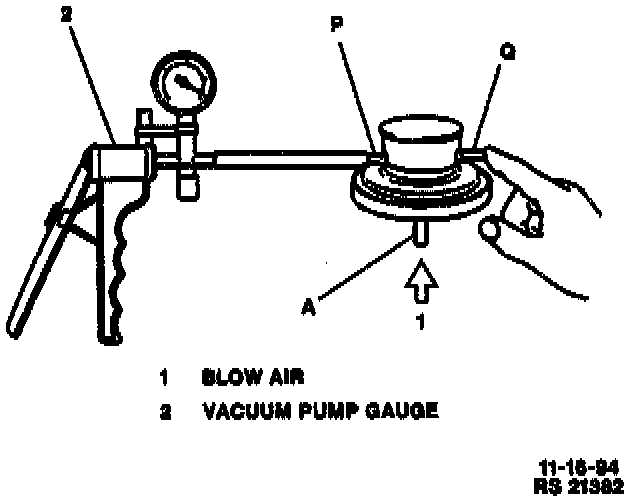 4. Blow air into tube "A" while applying vacuum to tube "P" at the same time. You should be able to obtain vacuum on the vacuum pump gage.