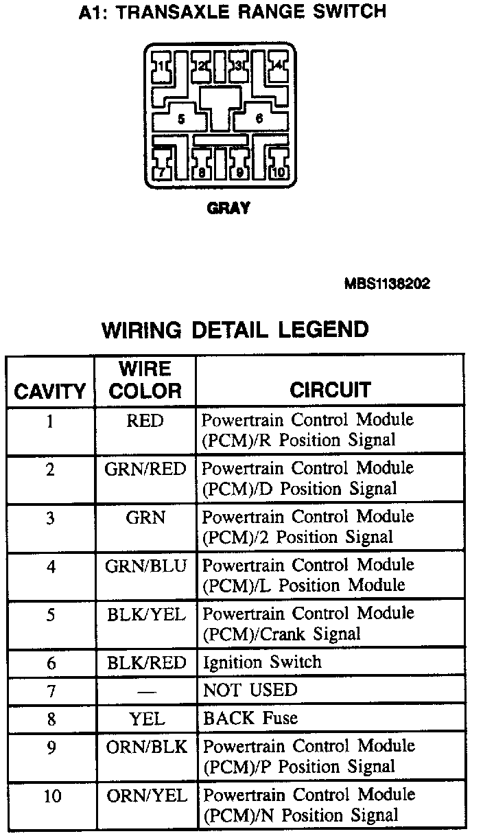 A1: Transaxle Range Switch:
