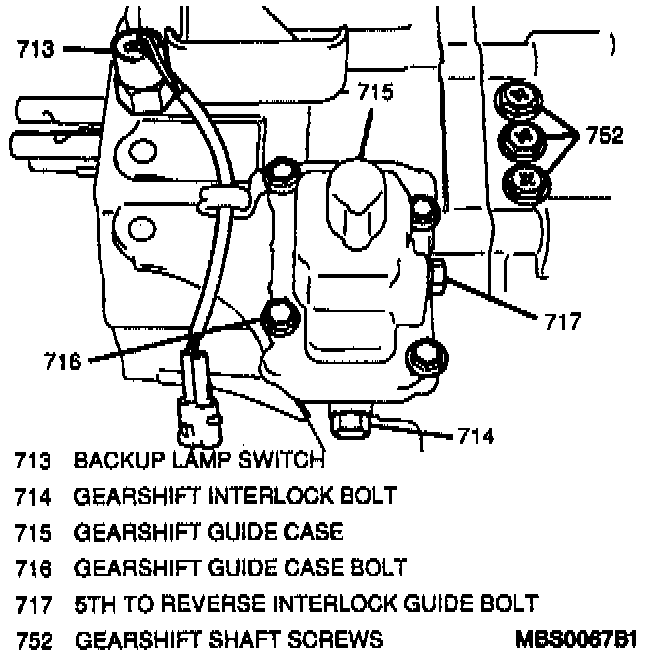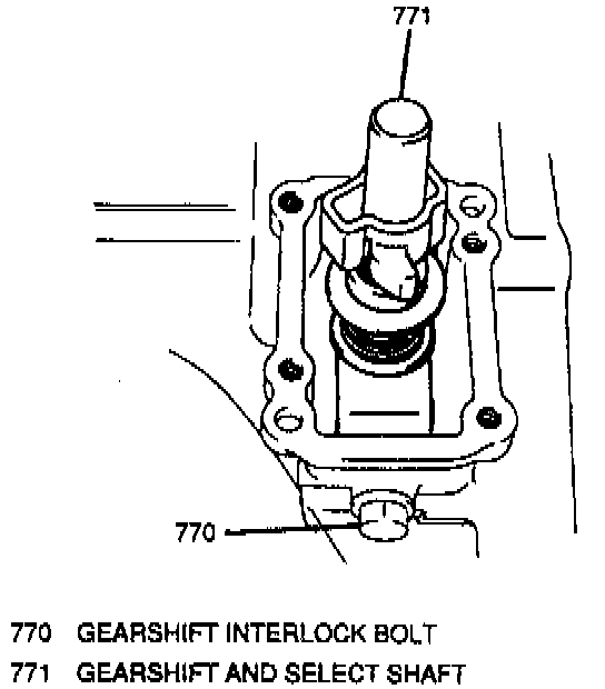 - It is not necessary to remove the 5th-to-reverse interlock bolt for gearshift guide case removal.