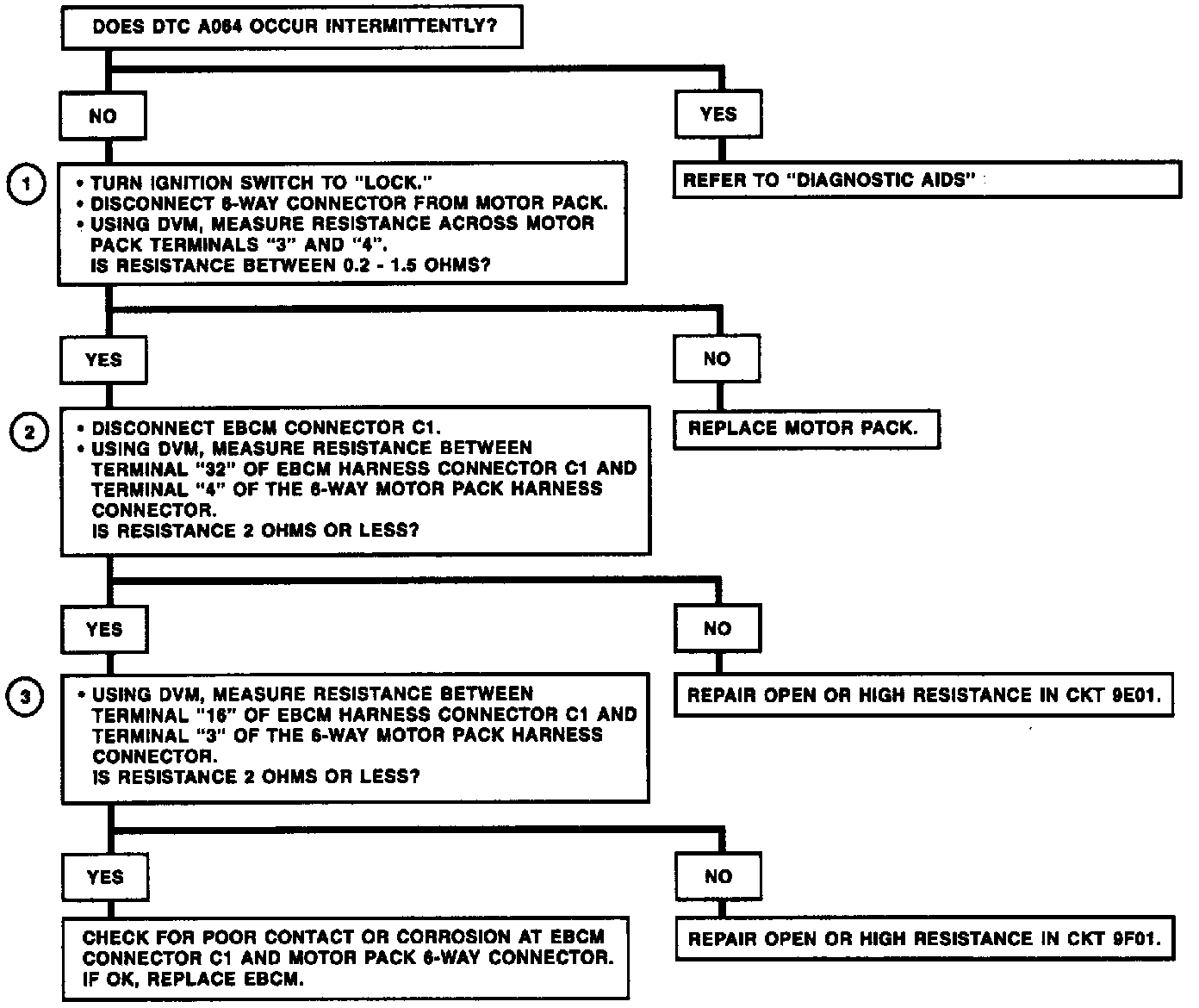 DTC A064 can be set only when the motor is commanded off. If the EBCM detects an out of range voltage on either of the rear motor circuits (indicating an open circuit), a malfunction exists.