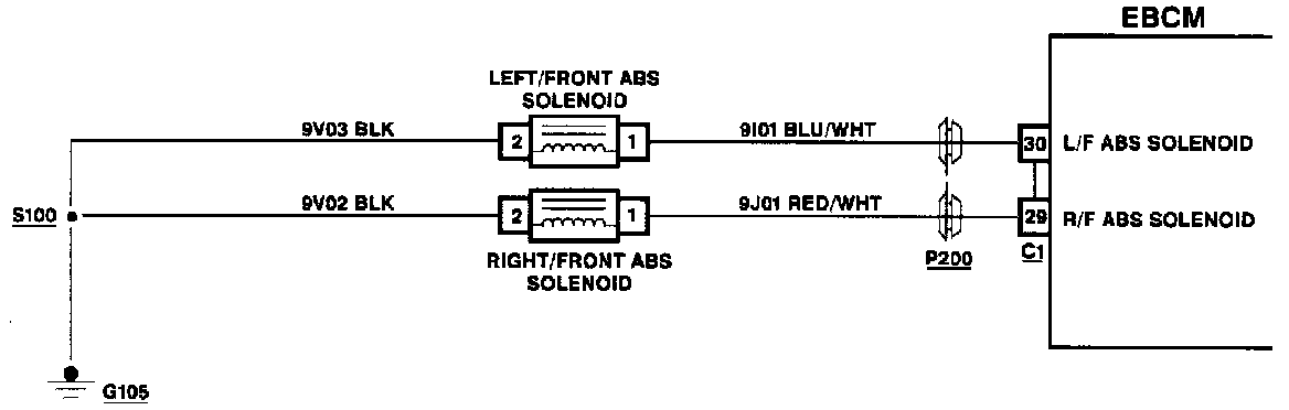 This DTC identifies a solenoid that cannot be energized due to an open in its circuitry, or a solenoid that is always energized due to a short to battery in its circuitry between the driver and the solenoid. An open will not allow proper ABS operation, but the short to battery simply turns the solenoid on. A path for base brakes is still allowed once the motor re-homes and the check ball is lifted off its seat during initialization.