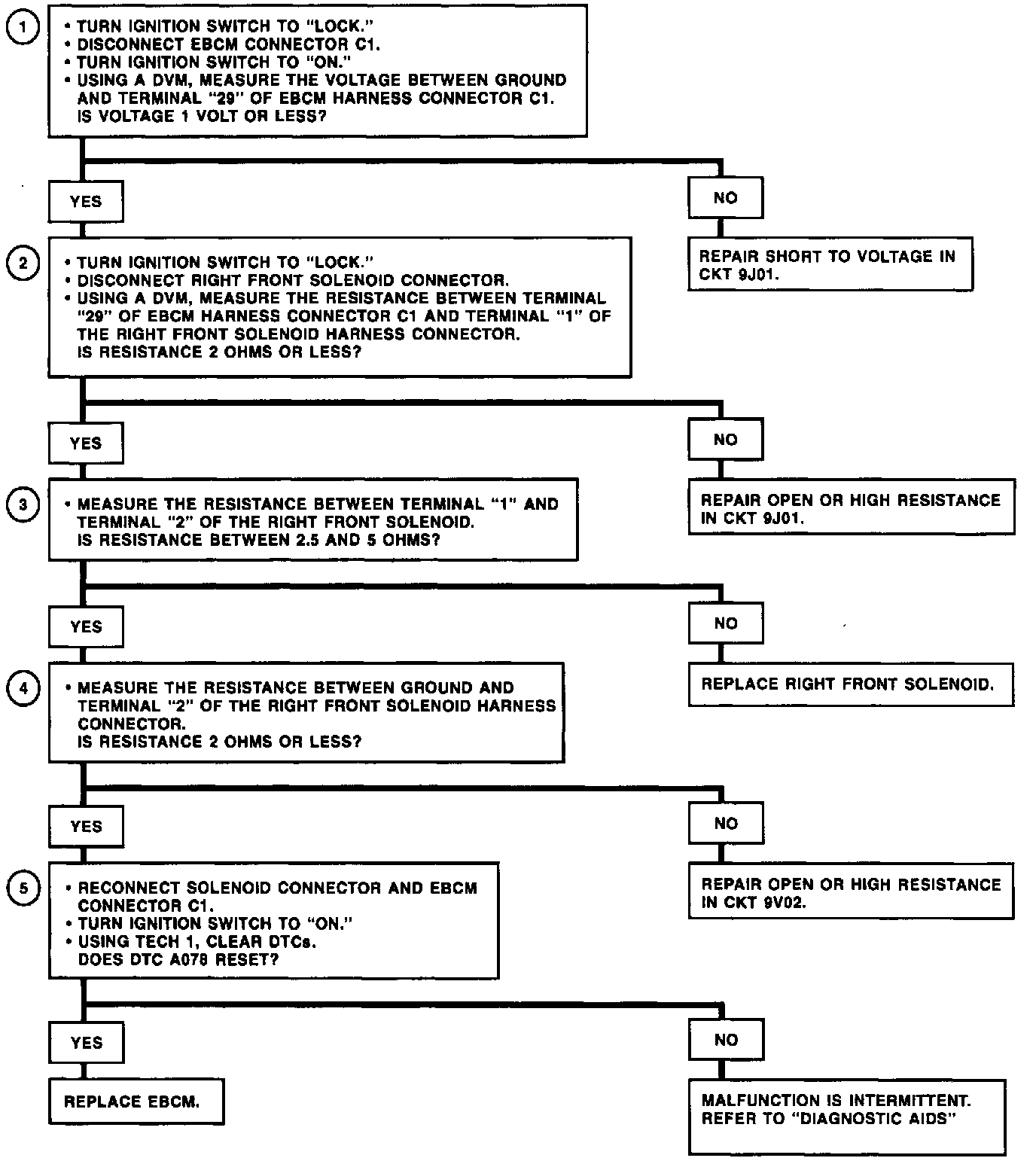 DTC A078 Right Front Solenoid Circuit Open Or Shorted To Battery: